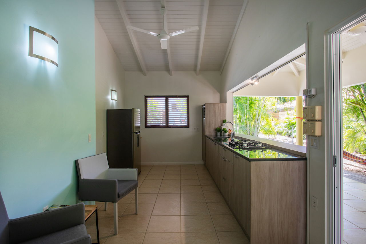 De ligging is centraal tussen Jan Thiel strand (5 autominuten) en Mambo Beach (10 autominuten). Er zijn meerdere supermarkten, duikschool en restaurants aanwezig in de omgeving.